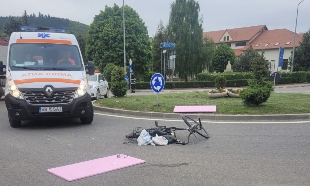 Un biciclist în vârstă de 72 de ani a fost lovit de o mașină, fix în sensul giratoriu din Piața Junilor din orașul Săliște.