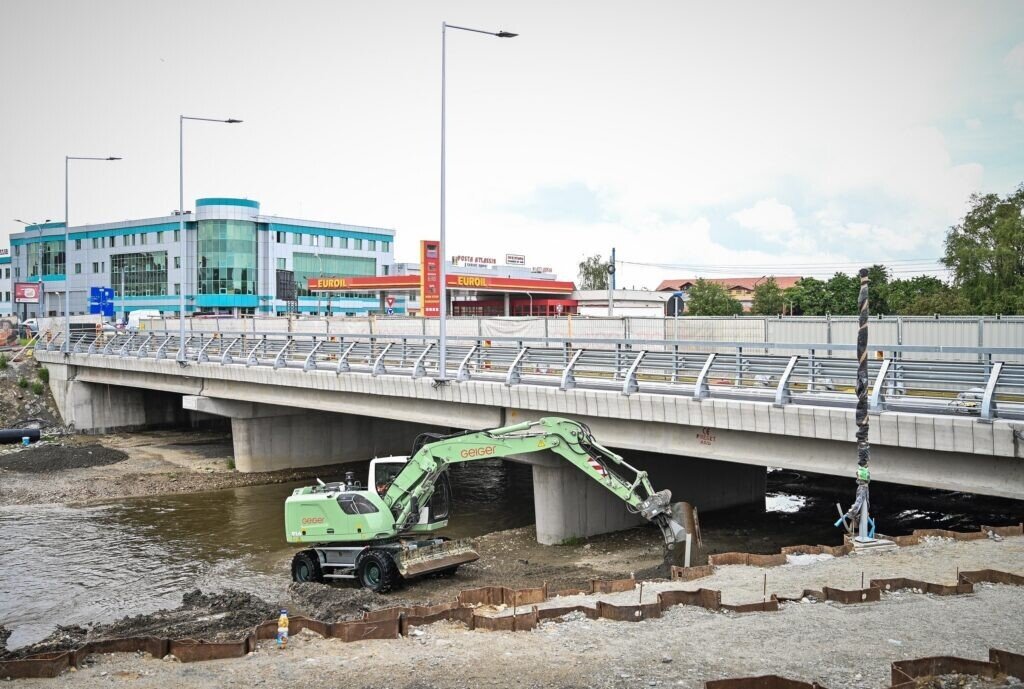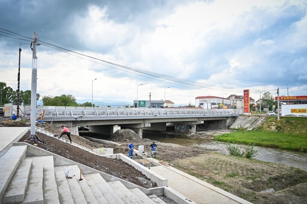 Precizăm că partea din aval a podului, cea dinspre str. Malului, este finalizată în proporție de 99%, fiind amenajat carosabilul, trotuarele și pistele pentru biciclete. Ultimele detalii se vor executa fără a mai fi necesară închiderea traficului.