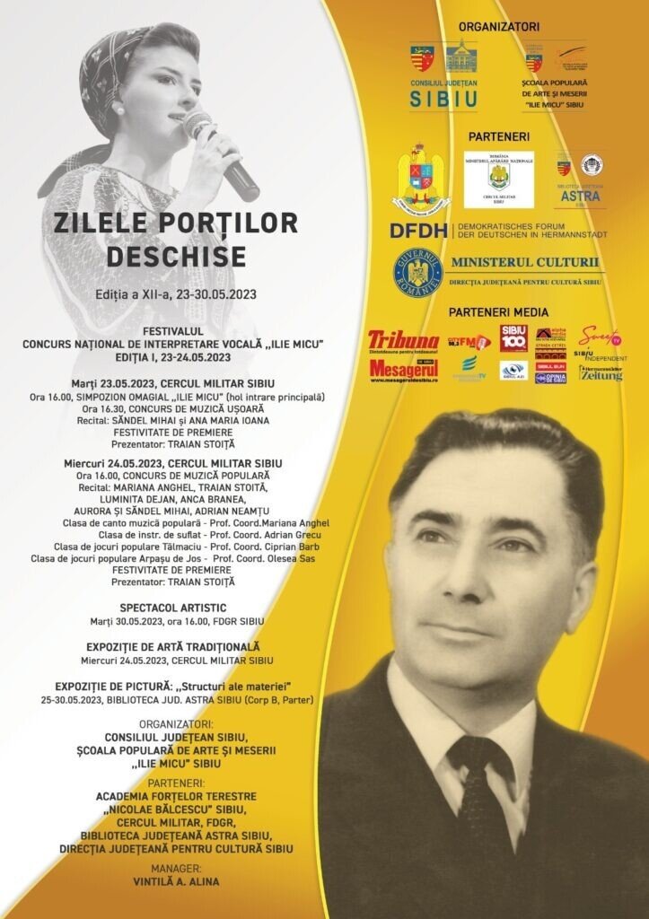 „Dragi sibieni, vă invităm în data de 23 și 24 mai, începând cu orele 16, la Cercul Militar Sibiu, la prima ediție a Festivalului Concurs Național de Interpretare Vocală „Ilie Micu”. Pentru că anul acesta se împlinesc 50 de ani de la trecerea sa în neființă, vom deschide acest festival cu un simpozion omagial dedicat marelui om de cultură. Vă așteptăm cu drag să ne fiți alături și să-i încurajați pe tinerii care vin la Sibiu din atâtea colțuri ale țării să vă dăruiască din frumusețea zonelor pe care le reprezintă” a declarat Alina Pinca-Vintilă, managerul Școlii Populare de Arte și Meserii „Ilie Micu” din Sibiu.
