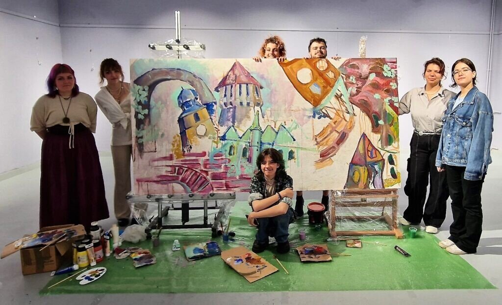 Încă de luni, şapte elevi de la Liceul de Artă din Sibiu, coordonați de profesorul Viorel Florin, au început o lucrare colectivă, care conţine imagini cu simboluri ale oraşului: Turnul Sfatului, unul din zidurile de pe strada Cetăţii, Catedrala Evanghelică, etc. Această lucrare este continuată azi de alţi doi artişti: Ovidiu Popârţan, organizatorul Transilvania Tattoo Expo şi artistul Marius Jucan, care va picta şi la finalul săptămânii, când are loc convenţia internaţională de tatuaje la Sala Thalia din Sibiu.