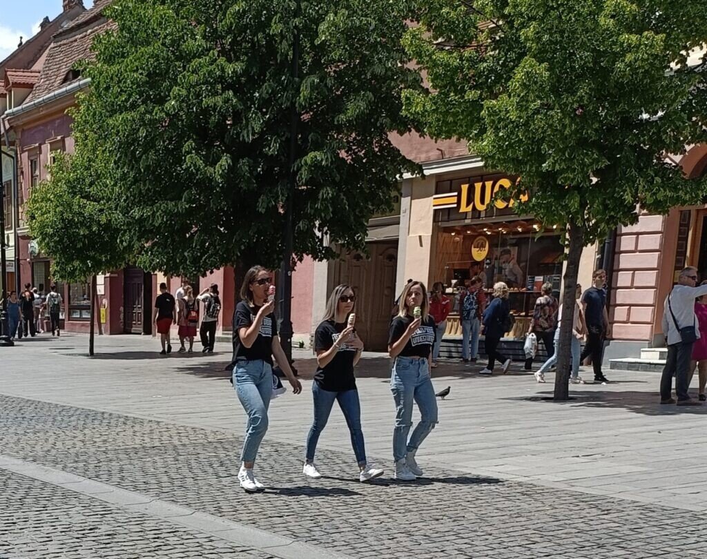 Unii au ales să se răcorească la o bere pe terasele de pe strada Nicolae Bălcescu. Majoritatea sunt bărbați, dar am remarcat și femei care susțin echipa clujeană. Unii au venit chiar și cu familia cu copii mici. Îi distingi după tricouri sau fularele marcate U Cluj.