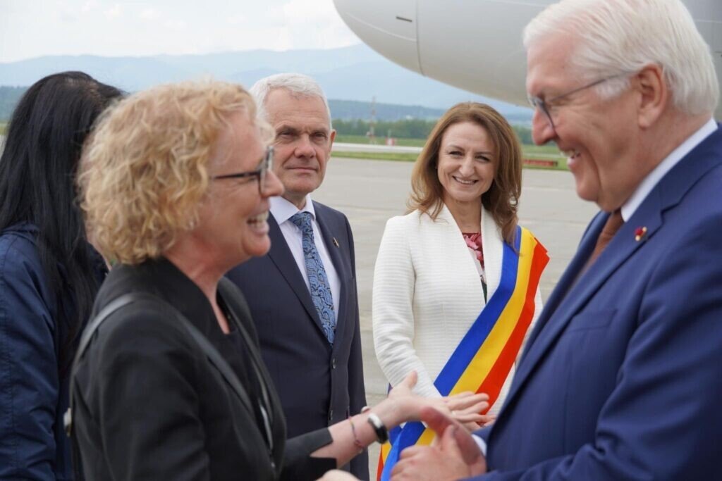 Alături de consulul german la Sibiu, doamna Kerstin Ursula Jahn și de prefectul județului Sibiu, domnul Mircea Crețu, Daniela Cîmpean – Președinta Consiliului Județean Sibiu i-a urat „bun venit” președintelui Republicii Federale Germania, domnul Frank-Walter Steinmeier, sosit în vizită în județul nostru.