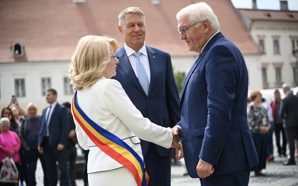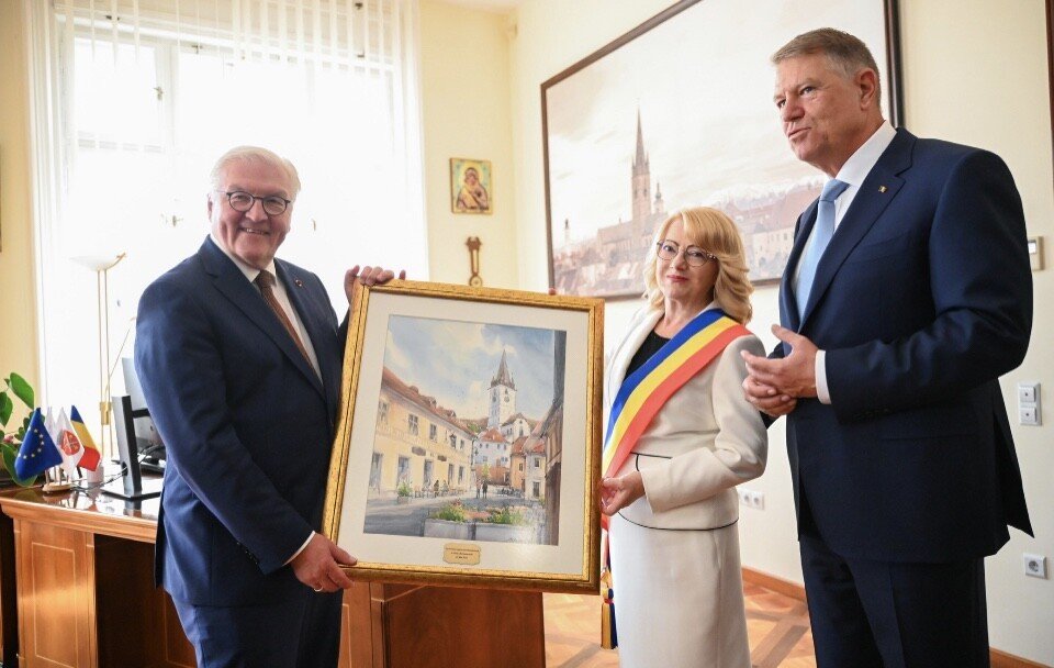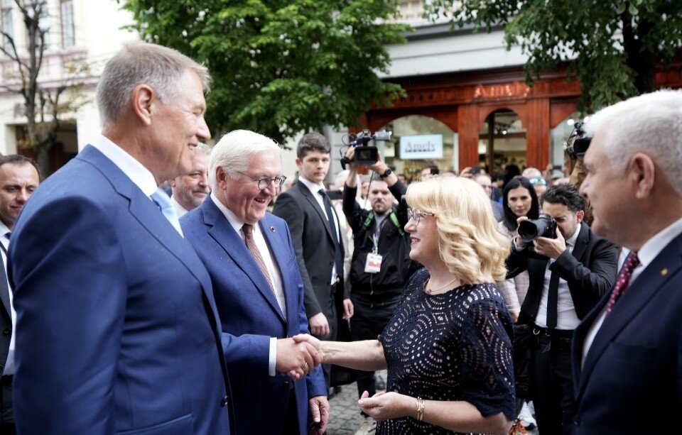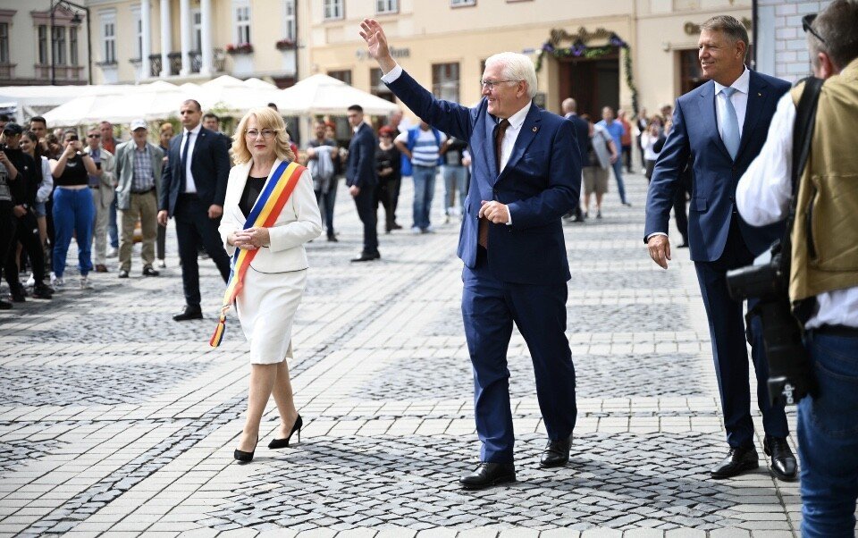 După o întâlnire cu comunitatea germană la Forumul Democrat al Germanilor și o discuție a celor doi Președinți cu liceeni sibieni, vizita Președintelui Steinmeier în municipiul Sibiu s-a încheiat cu o recepție oferită de primarul Astrid Fodor care a prilejuit o întâlnire între cei doi înalți oficiali și reprezentanții comunității Sibiului.