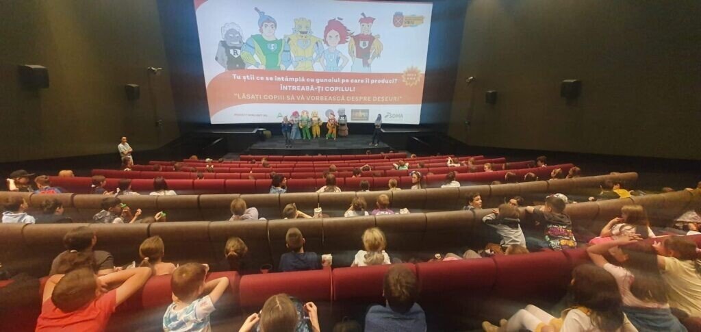 Cei mici au luat cu „asalt” sălile cinematografului Cine Gold din Promenada mall, au urmărit filmulețe despre reciclare, au pus întrebări și s-au întâlnit cu super eroii colectării selective.