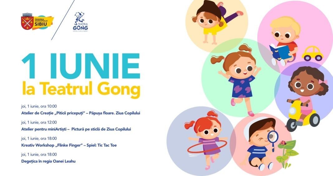 Teatrul pentru Copii și Tineret „Gong” Sibiu prezintă în luna iunie o selecție cu cele mai îndrăgite basme ale copilăriei într-o tehnică ce reinventează arta animației pentru a deschide noi orizonturi în care imaginarul devine realitate. Printre titlurile lunii se numără Degețica, Albă ca Zăpada și Scufița Roșie, dar și o serie eclectică de ateliere pentru copii și adolescenți. Spectacolele sunt jucate zilnic în matineu pentru grupuri educaționale, în circuit închis, dar și la final de săptămână, pentru publicul larg. Programul spectacolelor din weekend poate fi consultat aici.