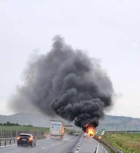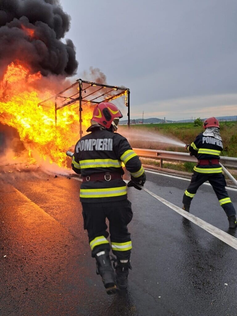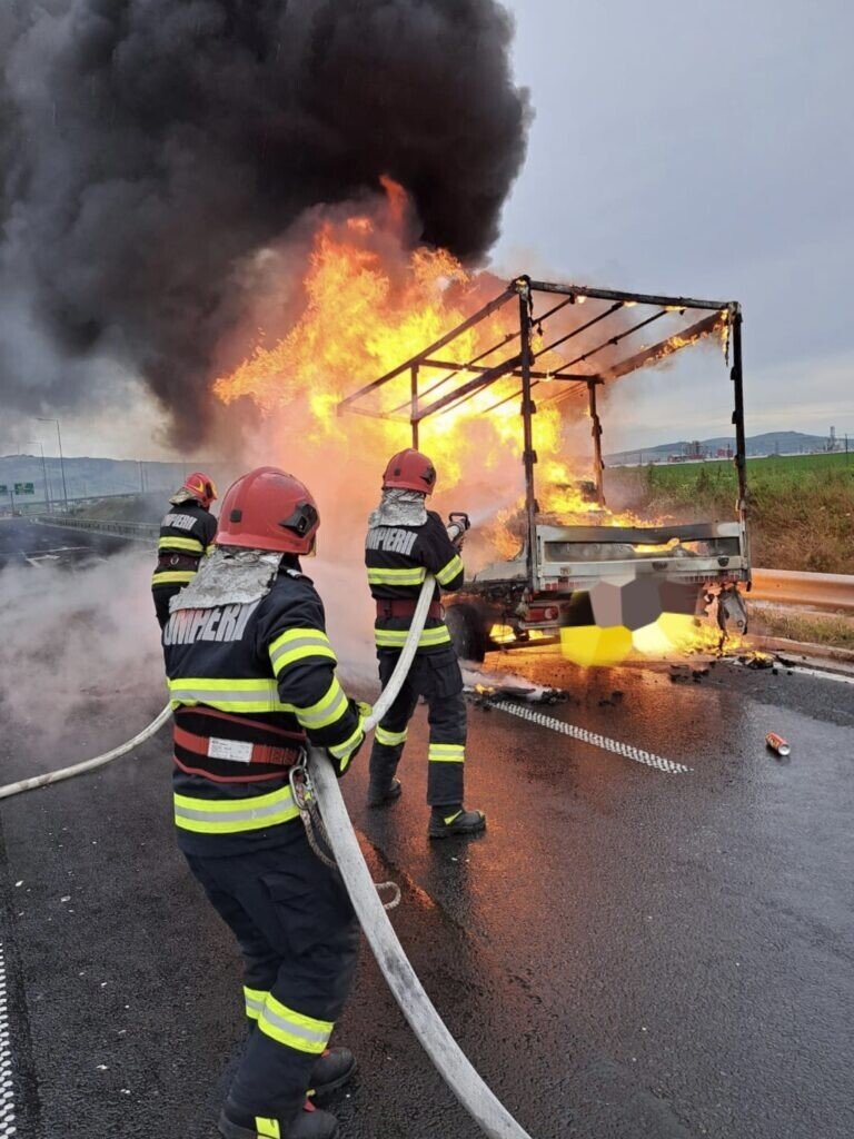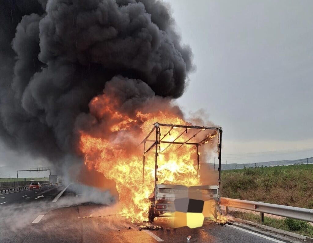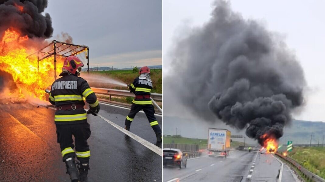 Un incendiu violent a izbucnit la o autoutilitară ce se deplasa pe autostrada A1, pe sensul Deva- Sibiu.