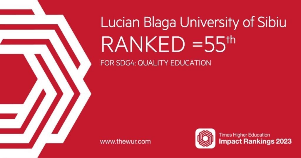 Locul 4 la nivel național în clasamentului Times Higher Education Impact Ranking 2023 și locul 2 în România privind evaluarea obiectivului „Educatie de calitate”, acestea sunt recentele rezultate obținute de Universitatea „Lucian Blaga” din Sibiu în clasamentul publicat ieri de prestigioasa revistă britanică Times Higher Education (THE). La nivel global, evaluarea pe ansamblu a situat ULBS în primele 401-600 universități din lume în ceea ce privește implicarea în activități specifice dezvoltării durabile și pe locul 55 în clasamentul care analizează „Obiectivul 4 – Educație de calitate”.