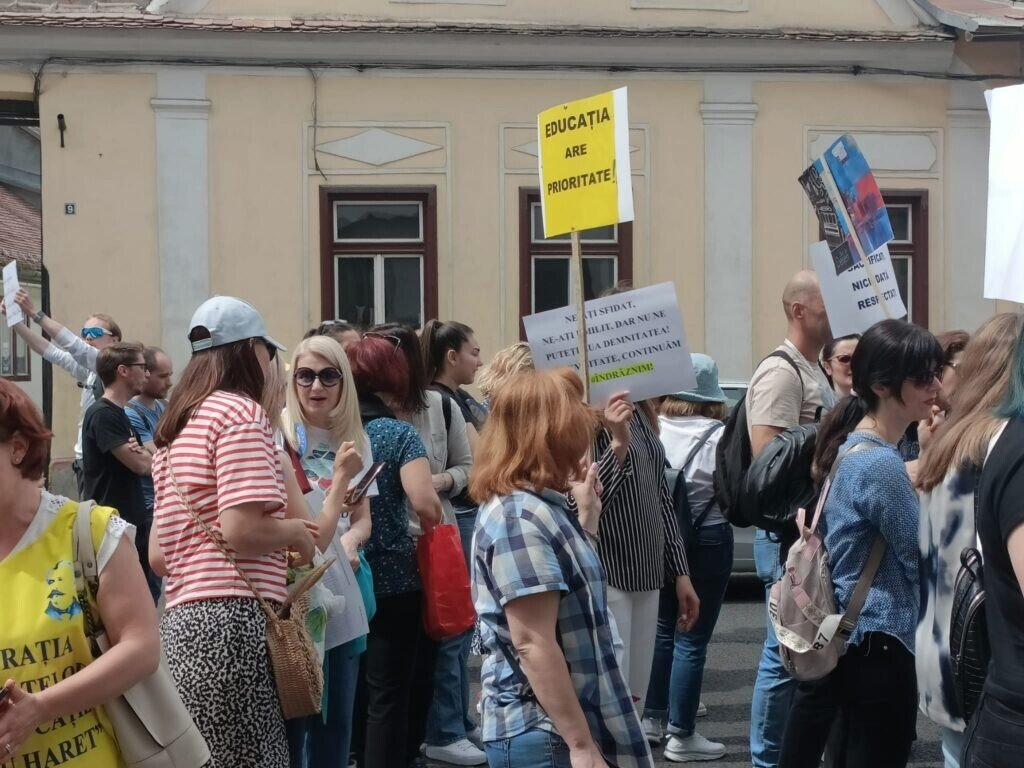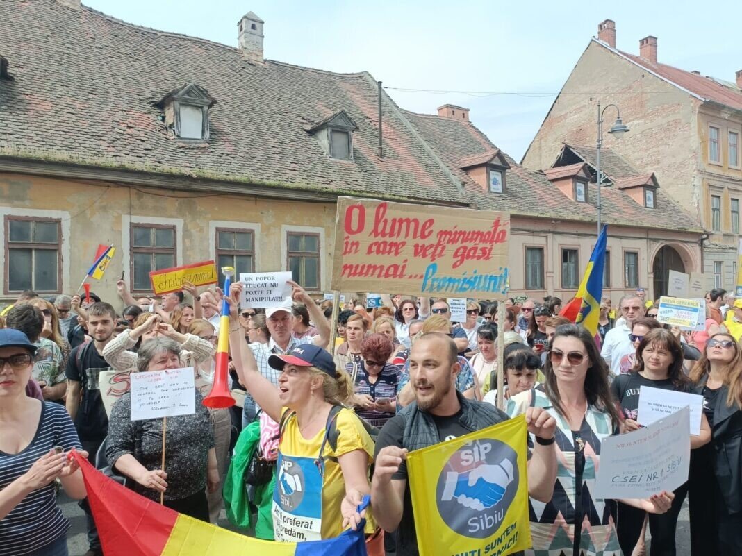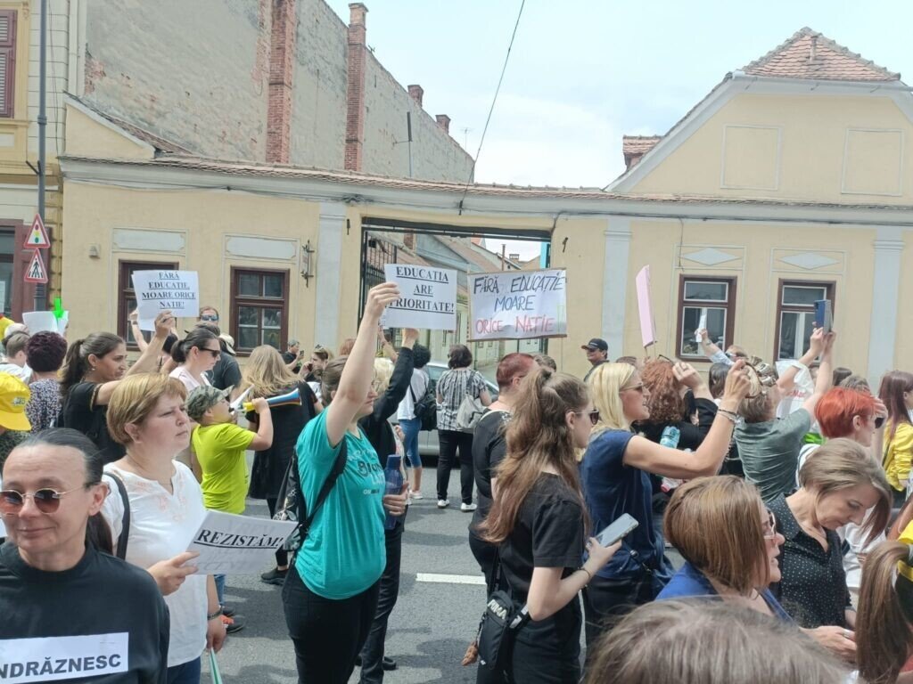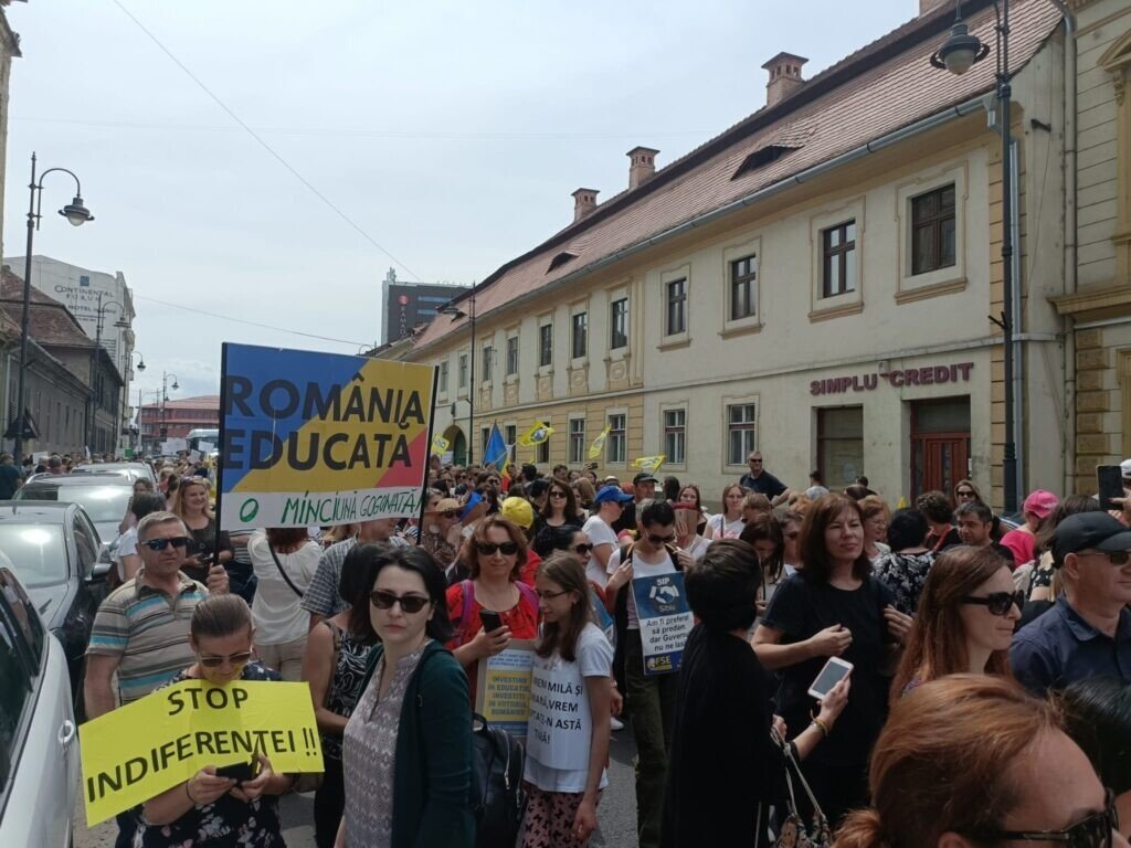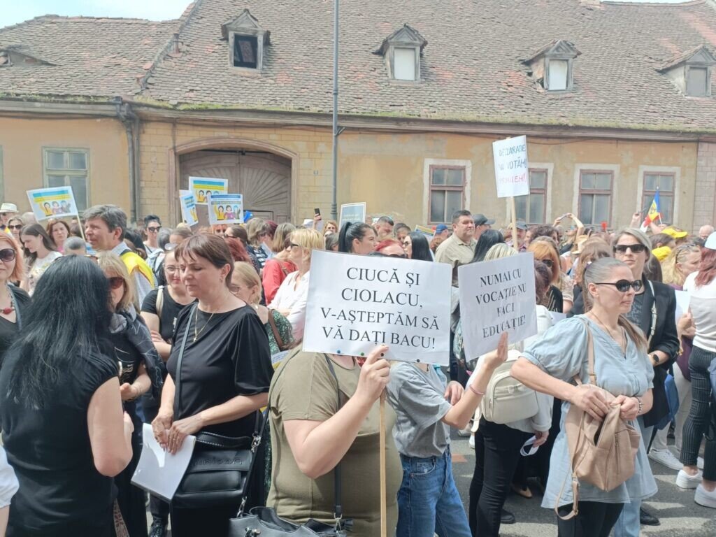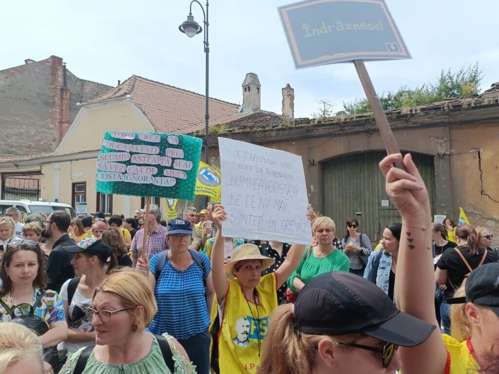 Greva generală a profesorilor din județul Sibiu continuă. Deși Guvernul și Președintele au anunțat că au îndeplinit cerințele profesorilor, realitatea din stradă este alta. Profesorii nu sunt de acord cu mărirea oferită de Guvern, nici cu Memorandumul aprobat ieri de acesta. Promisiunile guvernamentale nu mai sunt suficiente pentru profesori care de aproape 3 ani așteaptă măririle salariale promise anterior. Acum vor fapte.