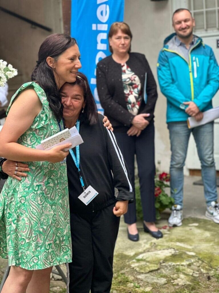 „Am ajuns într-o viață nouă pentru mine. Îmi place să mă ocup de gospodărie și să fiu împreună cu ceilalți. Sărbătorim zile de naştere şi mâncăm împreună. Este frumos.” spune Venesa și râde. Ceremonia de deschidere îi amintește încă o dată cât de frumos este să poată să trăiască independent.