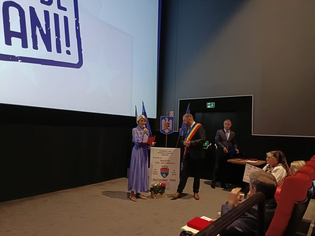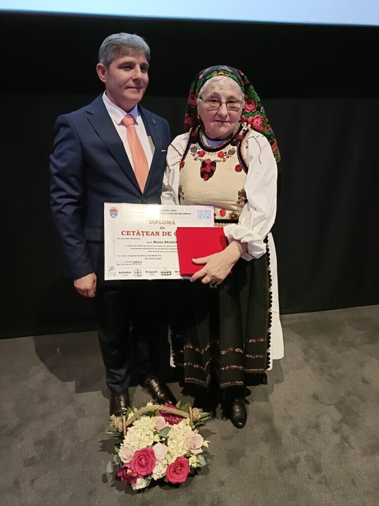 Acțiunile organizate de Primăria comunei Șelimbăr cu ocazia împlinirii a 700 de ani de atestare documentară a localității au continuat astăzi cu decernarea titlurilor de cetățean de onoare. Consiliul Local Șelimbăr a aprobat ieri propunerea primarului Marius Grecu de a decerna aceste titluri învățătoarei Maria Neghină și rectorului Sorin Radu. Ambii locuitori ai comunei. La ceremonialul organizat la sala de cinema a Shopping City a fost prezentă și Raluca Turcan, ministrul Culturii.