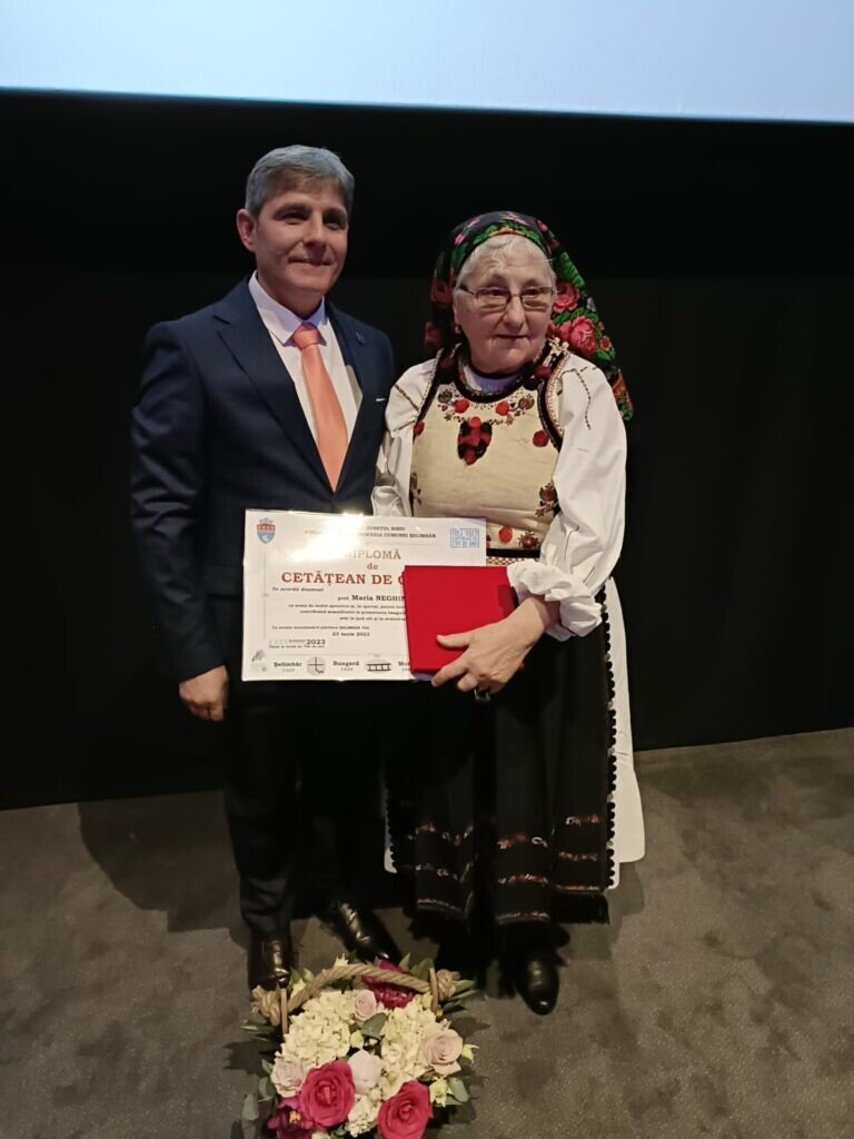 Ceremonia de decernare a titlurilor de cetățean de onoare s-a făcut cu citirea hotărârilor de consiliu local de către secretarul comunei Elena Scumpu. Maria Neghină, învățător și promotor al tradițiilor din zonă de peste 50 de ani: „Mulțumesc grupului folcloric Vestala din Veștem unde activez de 50 de ani. Mulțumesc familiei și șelimbărenilor”. Ea a îndemnat oamenii mâine să îmbrace ia românească.