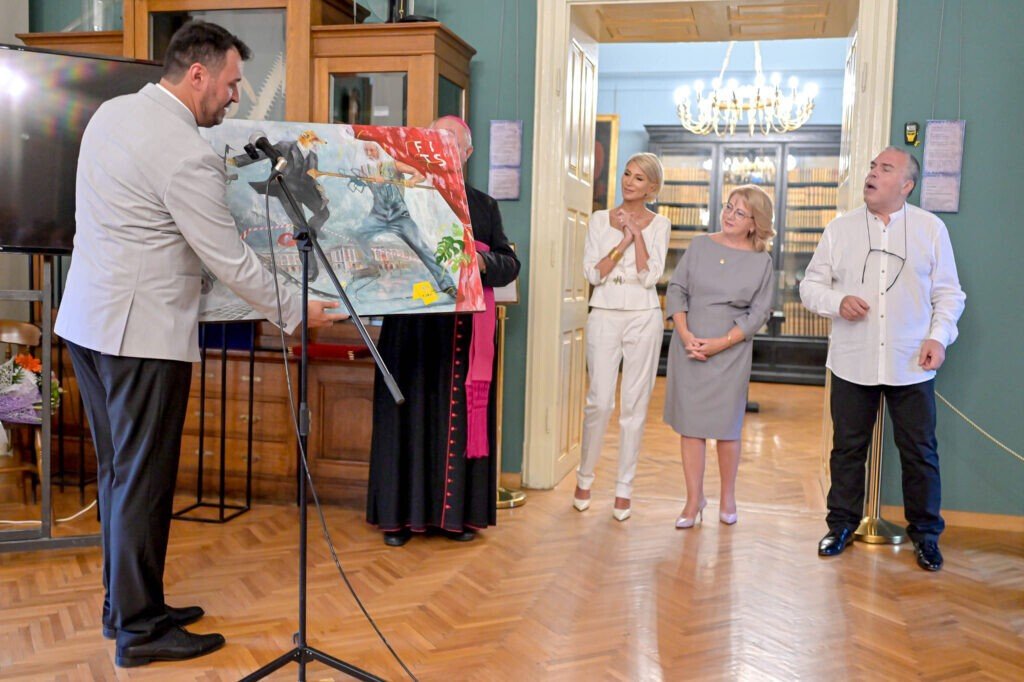 La vernisaj, directorul Muzeului Brukenthal, Alexandru Chituță a subliniat ajutorul enorm oferit de-a lungul timpului muzeului de actualul ministru al Culturii, Raluca Turcan și de primarul Sibiului, Astrid Fodor. Cele două, prezente la eveniment, au apreciat deschiderea spre colaborări internaționale și rapida schimbare de ritm în managementul muzeului de la preluarea conducerii de către Alexandru Chituță. Acesta le-a oferit o lucrare „Samuel von Brukenthal” realizată de artista Sofia Frankl.