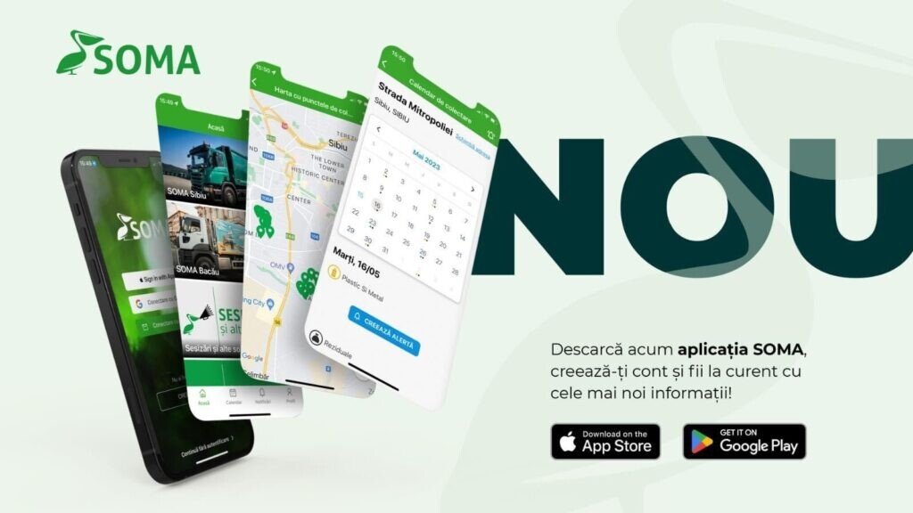 SOMA Sibiu anunță lansarea aplicației SOMA, prima aplicație românească din domeniul salubrizării.