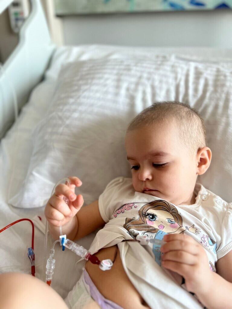 Amelia are numai 2 anișori, iar în fiecare zi este supusă unor chinuri groaznice. De patru luni de zile, micuța e țintuită într-un pat de spital, conectată la perfuzii. La numai 2 anișori, Amelia face chimioterapie.