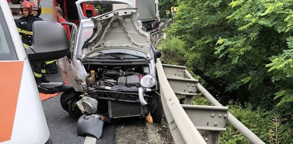 Din primele informații, o mașină și un autocamion au intrat într-o coliziune frontală. În urma impactului, cel puțin o persoană a fost rănită.