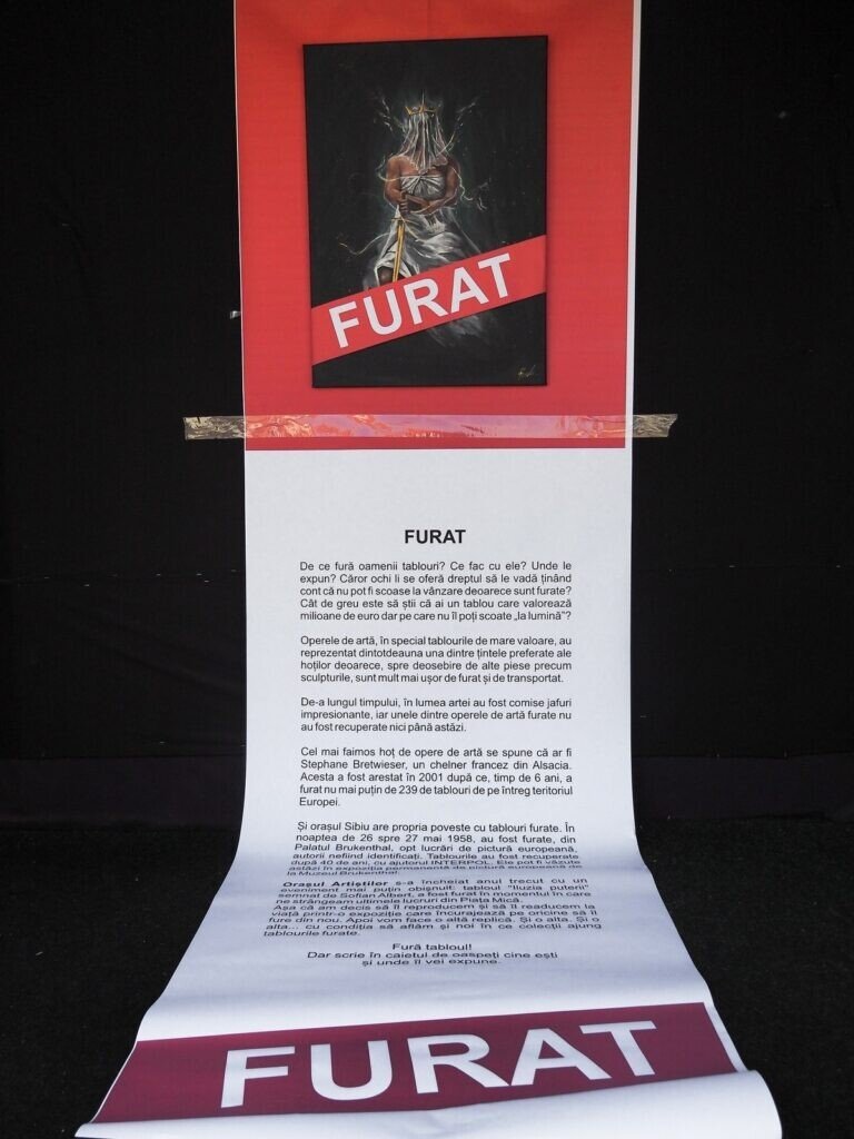 Sibiul are și el propria poveste cu tablouri furate. În noaptea de 26 spre 27 mai 1958, au fost furate, din Palatul Brukenthal, opt lucrări de pictură europeană, autorii nefiind identificați. Tablourile au fost recuperate după 40 de ani, cu ajutorul INTERPOL. Ele pot fi văzute astăzi în expoziția permanentă de pictură europeană de la Muzeul Brukenthal.âOrașul Artiștilor vă așteaptă în perioada iunie – octombrie 2023, cu o serie largă de evenimente dedicate iubitorilor de artă. Expoziții, ateliere pentru cei mici, dar și obiecte de artă sau decorative pentru turiști sau localnici. Proiectul Orașul Artiștilor este cofinanțat de ConsilIul Județean Sibiu și Primăria Municipiului Sibiu