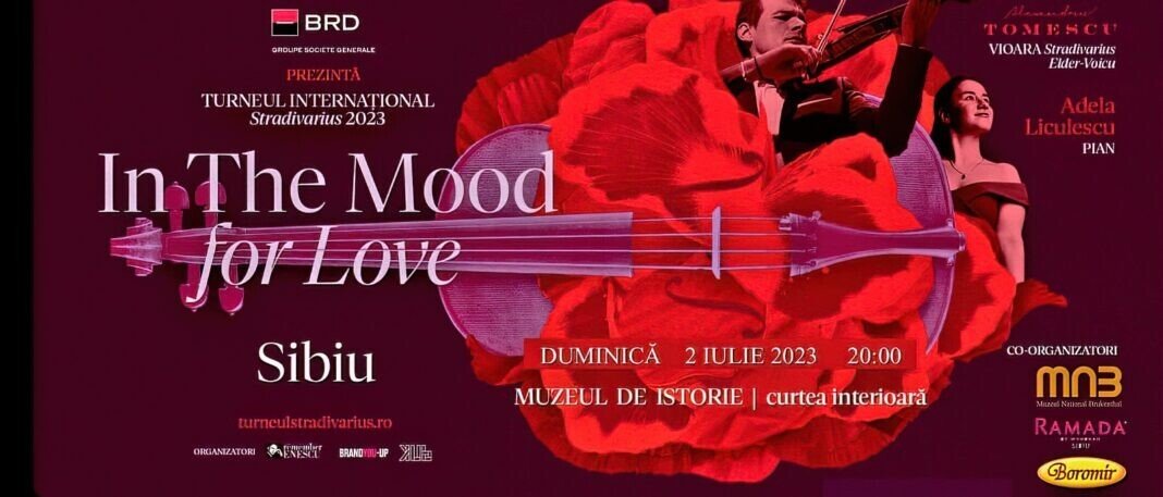 Turneul Internațional Stradivarius „In The Mood for Love” ajunge la Sibiu duminică 2 iulie 2023. În acest an, turneul parcurge 17 locații din România, străbătând mai mult de 4000 km, timp de aproape o lună de zile. Violonistul Alexandru Tomescu și pianista Adela Liculescu vor aduce muzica celor mai frumoase povești de iubire ale marilor compozitori ai lumii în curtea Muzeului de Istorie Casa Altemberger.