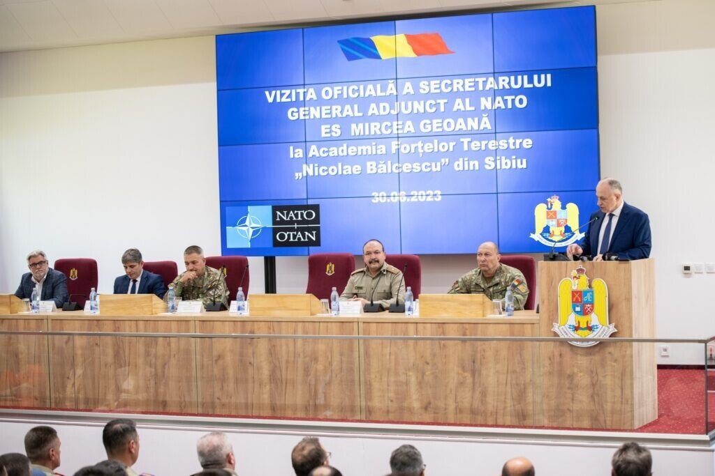 Academia Forțelor Terestre „Nicolae Bălcescu” din Sibiu a avut onoarea de a primi vineri, 30 iunie, vizita Secretarului General Adjunct al NATO, domnul Mircea Geoană. Delegația a fost întâmpinată de comandantul și rectorul academiei, domnul gl.bg.prof.univ.dr.ing. Ghiță Bârsan.