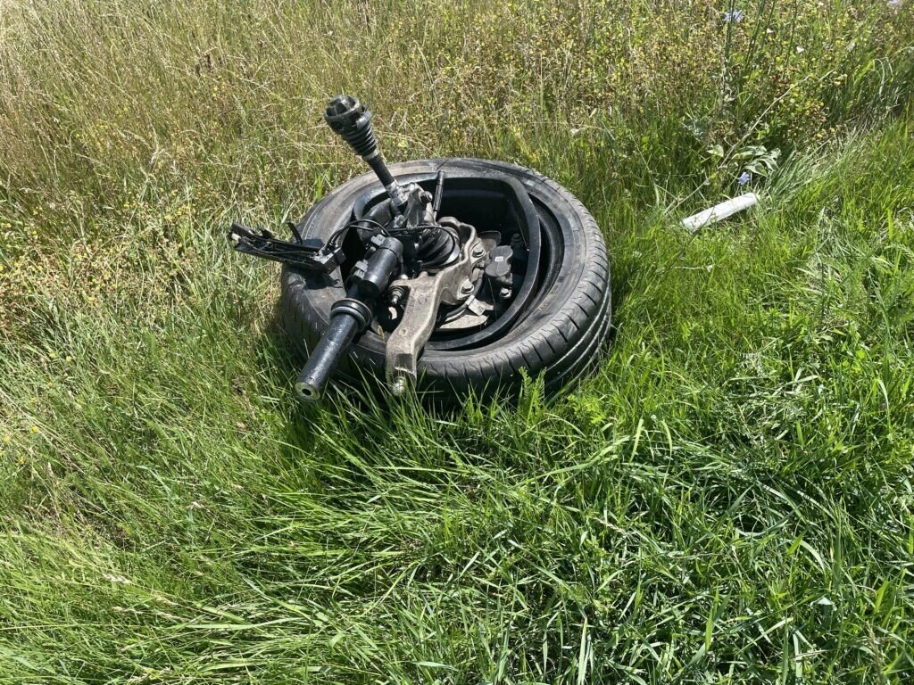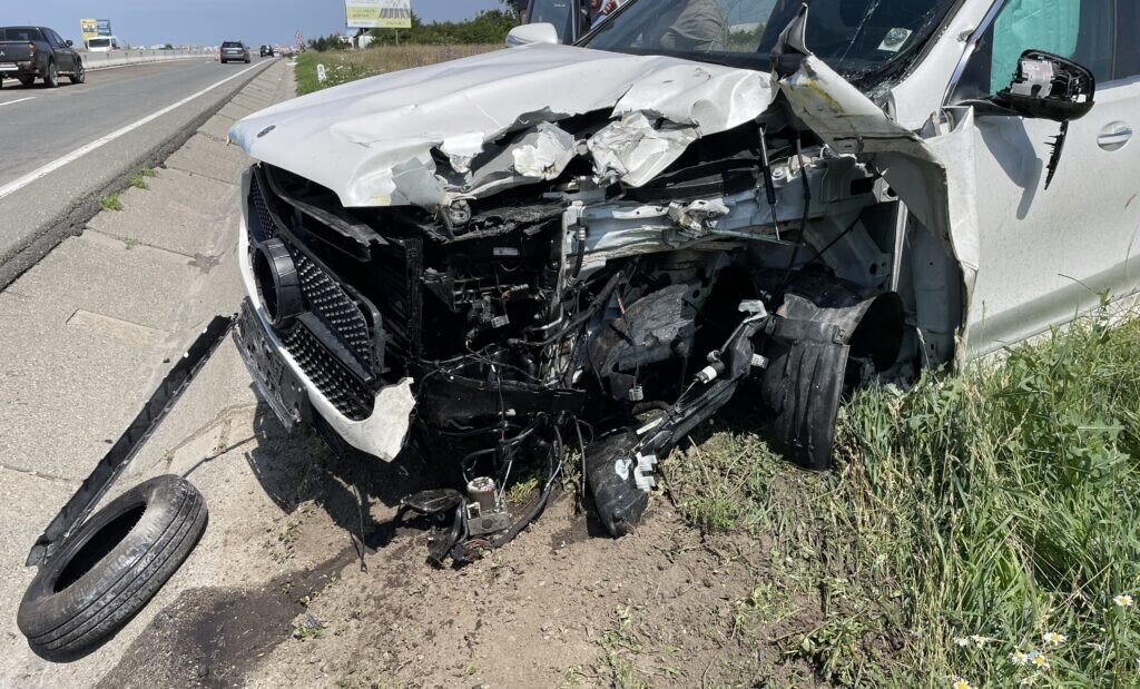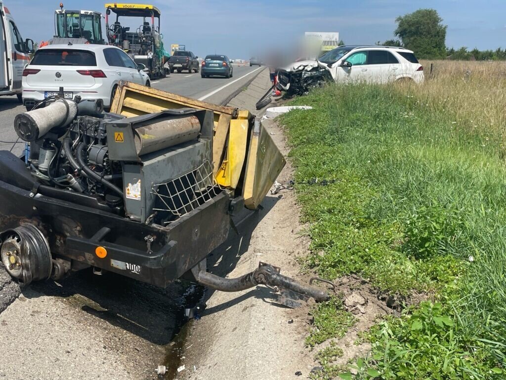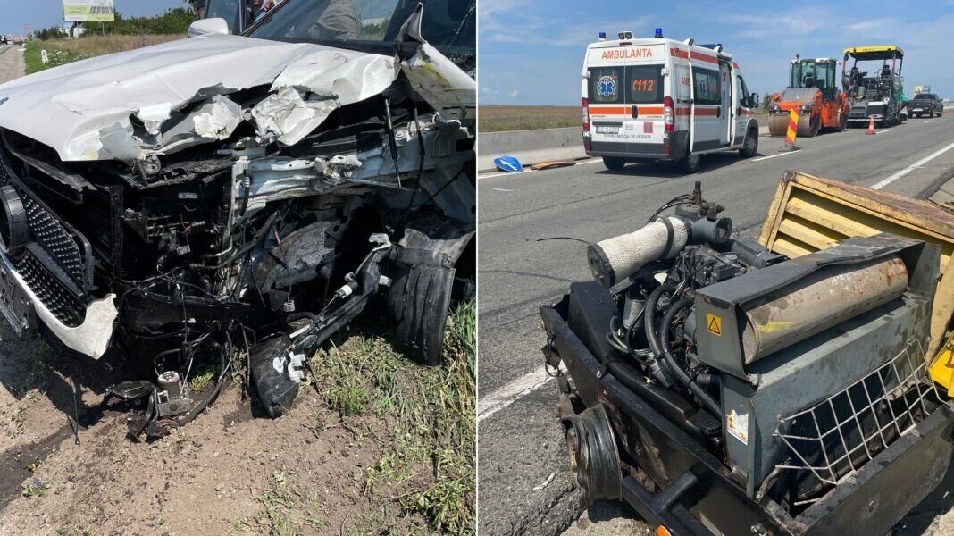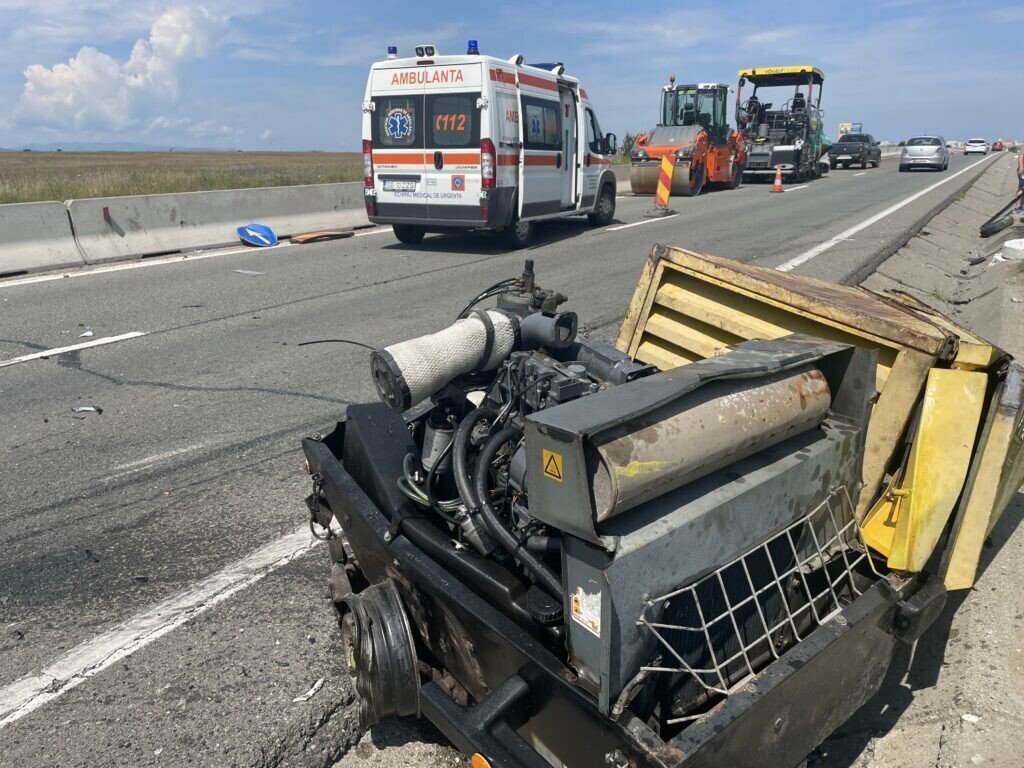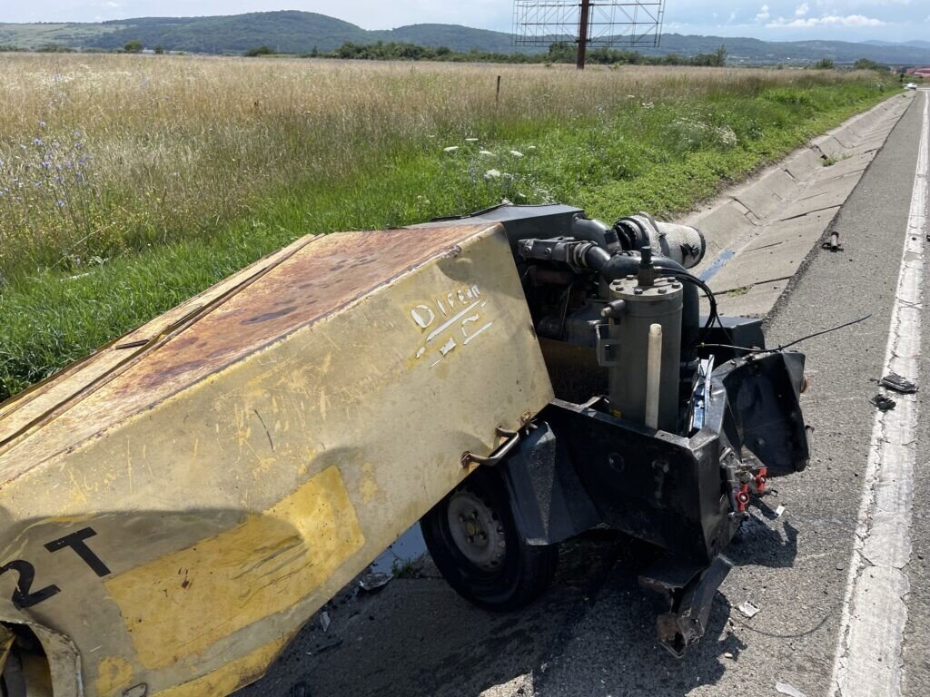 În urma impactului, atât utilajul cât și SUV-ul au fost proiectate în afara părții carosabile. Din fericire, nimeni nu a fost rănit grav însă pagubele sunt de ordinul miilor de euro.