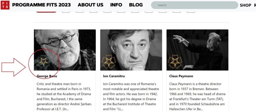 Doar că la Sibiu, stelele Celebrităților de pe asfalt, nu coincid cu cele pe panoul oficial afișat în spatele primarului Astrid Fodor și nici cu cele de pe siteul oficial al FITS, secțiunea Aleea Celebrităților. În ambele reprezentări, pentagrama este cu capul în jos. La fel înconjurată de turnuri. Dar pentagrama inversată este un simbol universal al Bisericii lui Satan, folosit de membrii acestei biserici și practicanții de magie neagră din toată lumea de multe sute de ani.