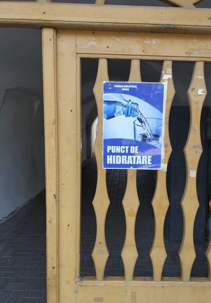 Având în vedere temperaturile în continuă creștere din ultima perioadă, Primăria Municipiului Mediaș a înființat, în zona centrală, începând cu data de 5 iulie 2023, trei puncte de hidratare, în următoarele locații: