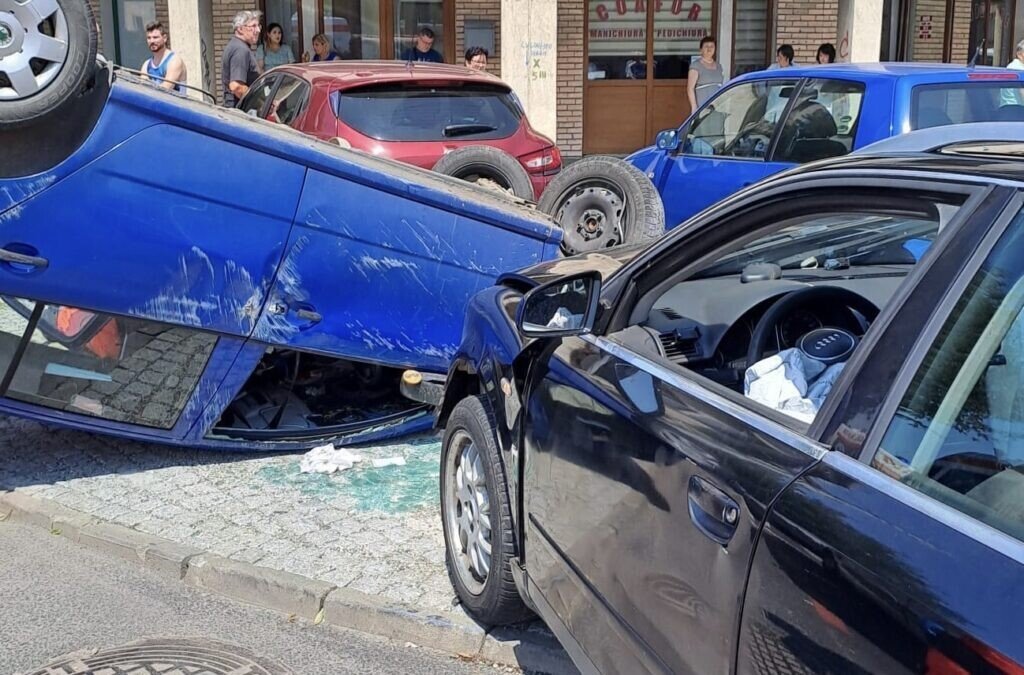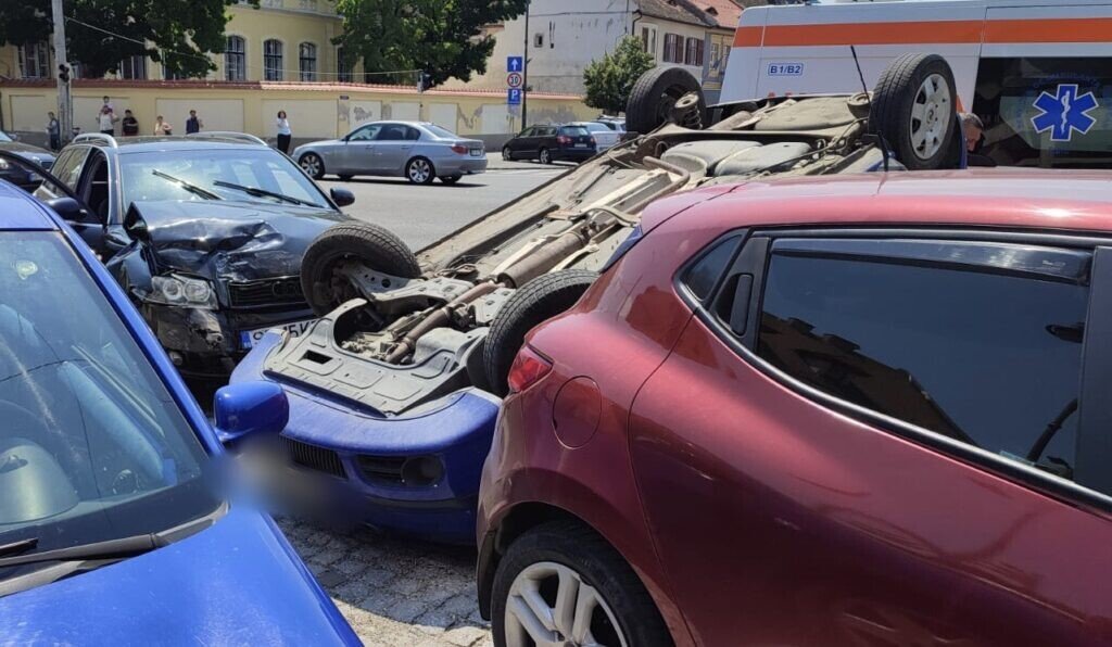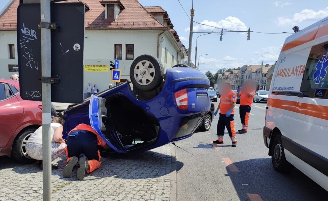 Din primele cercetări efectuate a rezultat că, în timp ce conducea un autoturism pe strada Constituției dinspre strada Teclu, la intersecția cu strada 9 Mai, un sibian în vârstă de 35 de ani ar fi observat un echipaj medical care circula în spatele său cu sistemele acustice și luminoase în funcțiune, moment în care a virat la stânga pentru a elibera drumul, a pătruns pe contrasens și a intrat în coliziune cu un autoturism condus din sens opus de către un tânăr în vârstă de 21 de ani, din Roșia. În urma impactului, primul autoturism s-a răsturnat pe carosabil.