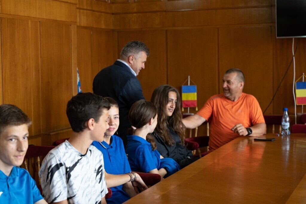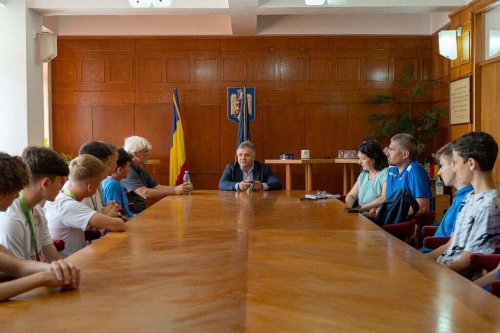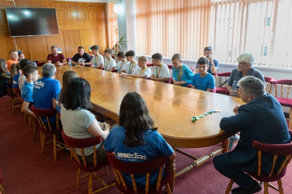 Delegația medieșeană care a reprezentat municipiul nostru la cea de-a 55-a ediţie a „Jocurilor Internaţionale ale Copiilor“ (JIC) din Coreea de Sud s-a reîntors recent de la competiție și a fost întâmpinată la sediul municipalității de către primarul municipiului Mediaș, dl. Gheorghe Roman.
