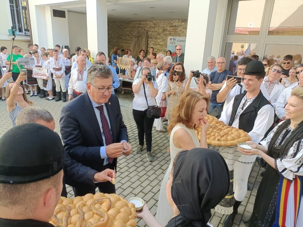 Vineri dimineață curtea Consiliului Județean s-a umplut de formații de dans și muzică din Republica Moldova. În aplauzele spectatorilor prezenți aceștia au interpretat diferite melodii și dansuri tradiționale. La un moment dat s-au prins în horă și Daniela Cîmpean, președinta Consiliului Județean Sibiu alături de secretarul general Nicolae Ivășchescu, de la Departamentul pentru Relația cu Republica Moldova din cadrul Guvernului.