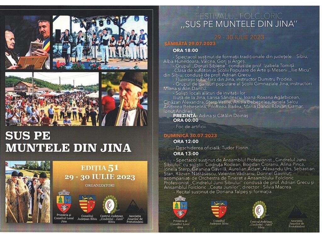 Jinarii de pretutindeni se reunesc an de an pe Plaiul Jinarilor, în ultimul sfârșit de săptămână din luna iulie, la Festivalul ”Sus pe muntele din JINA”, organizat de peste o jumătate de secol în amintirea nedeilor de altădată.