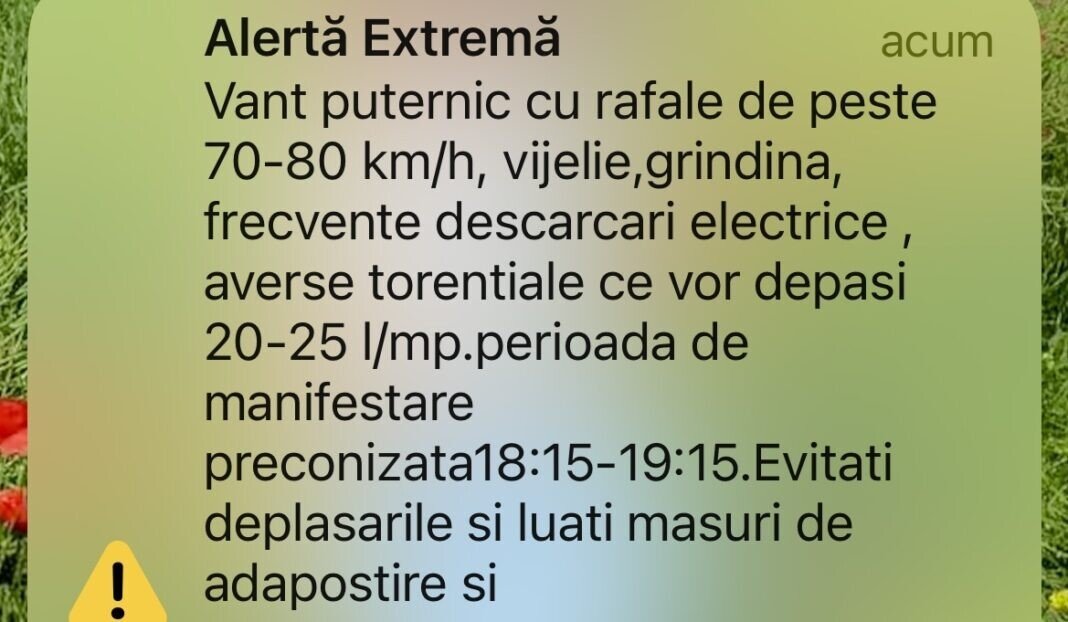 Sunt preconizate vânt puternic cu rafale de peste 70-80 km/h, vijelie,grindină, frecvente descărcări electrice , averse torențiale ce vor depăși 20-25 l/mp.