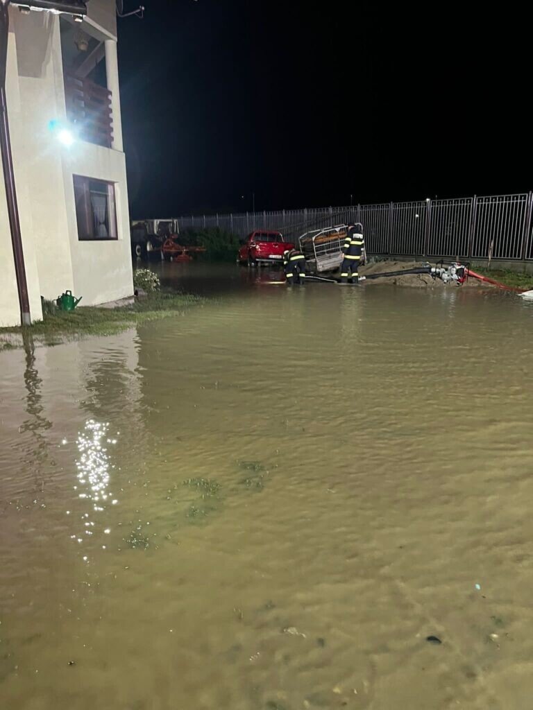 În cursul nopții, pompierii militari ai Punctului de Lucru Avrig, au intervenit în localitatea Scoreiu pentru a evacua apa acumulată în urma ploii din curtea unei gospodării.