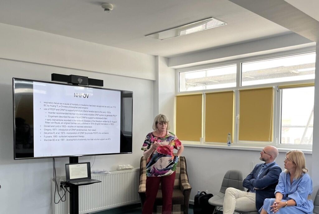 Tema workshop – ului a fost suportul respirator invaziv și non-invaziv cu frecvență oscilatorie înaltă pentru nou-născuți iar la dezbateri au participat toate centrele de neonatologie de nivel 3 din țară atât fizic (câte 1 reprezentant din fiecare centru de nivel 3) cât și prin sistemul de telemedicină (toate centrele).