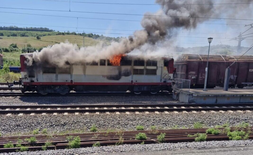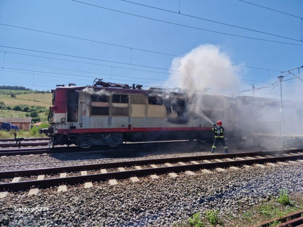 Locomotivă în flăcări la Dumbrăveni. Intervin pompierii