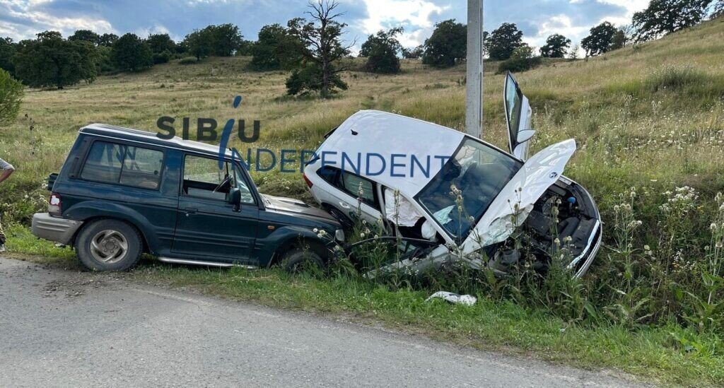Două autoturisme au intrat într-o coliziune violentă pe drumul de legătură dintre localitățile sibiene Alțăna și Benești.
