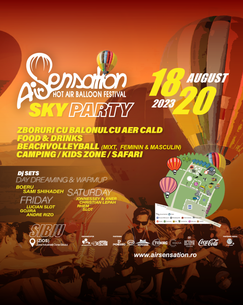 Zboruri cu balonul și paramotorul, jeep safari, muzică mixată de DJ renumiți – sunt doar câteva dintre ingredientele unei petreceri de neuitat, atât la sol cât și la 1000 de metri altitudine, ce va avea loc în perioada 18-20 august, lângă Sibiu!