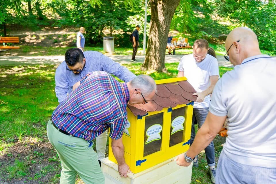 Inițiativa neobositei Echipe Galbene de a încuraja educația prin lectură, prin amplasarea Căsuțelor Galbene în mai multe locuri din județul Sibiu, a ajuns astăzi în parcul Subarini.