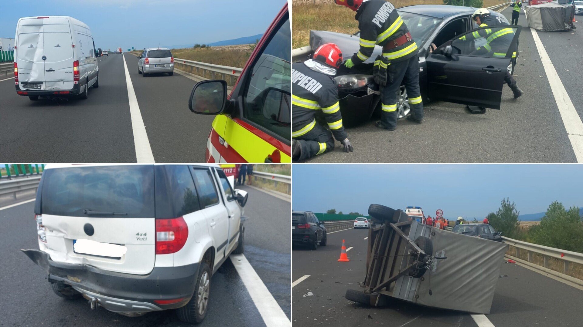Trei mașini și o remorcă au intrat în coliziune pe autostrada A1, km318, în zona Pianu de Jos din județul Alba.