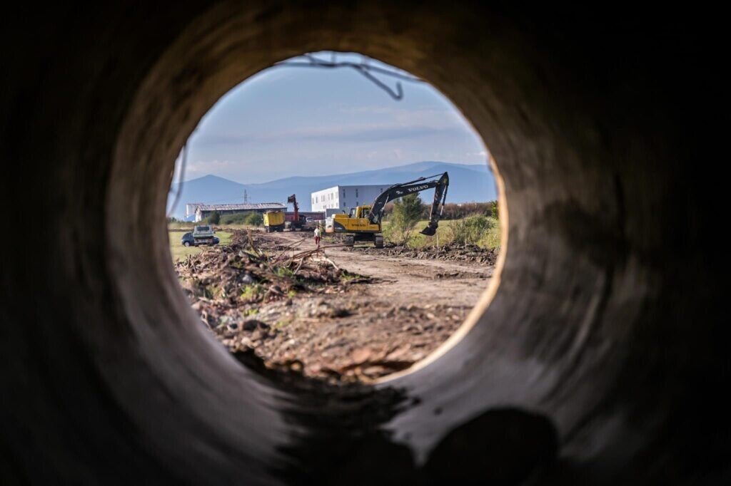 ☑️ Se lucrează la amenajarea cu elemente din beton a canalului care va colecta apa de ploaie de pe câmp