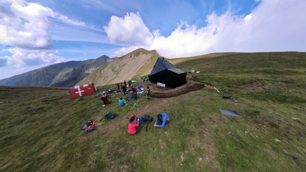 Când? Pentru ultima etapă – montarea refugiului – membrii și voluntarii AMC au organizat, de-a lungul acestei verii, mai multe tabere de lucru în Șaua Scara, în care au montat structura refugiului cărată aici cu un elicopter, au învelit construcția în tablă și panouri fotovoltaice și au lucrat la finisaje. Concomitent, zeci de voluntari au urcat și coborât din creastă, în mai multe ture, materiale, scule, provizii sau deșeuri, ajutând la curățarea treptată a șantierului creat. În total au fost peste 30 de zile de muncă pe creastă.