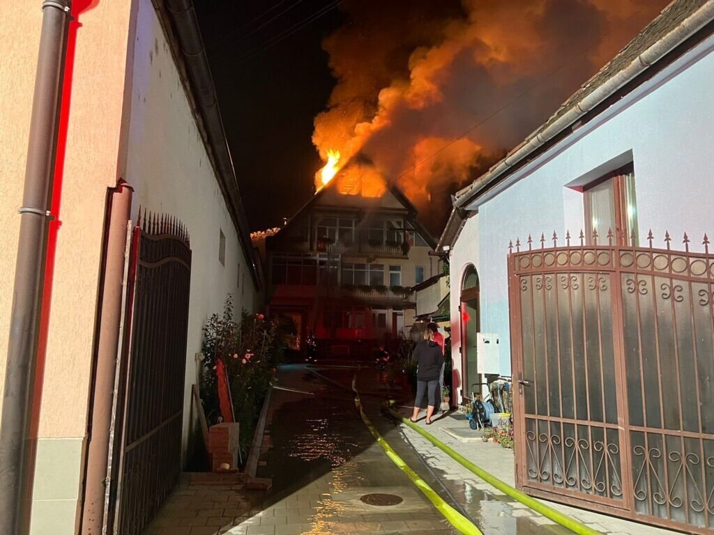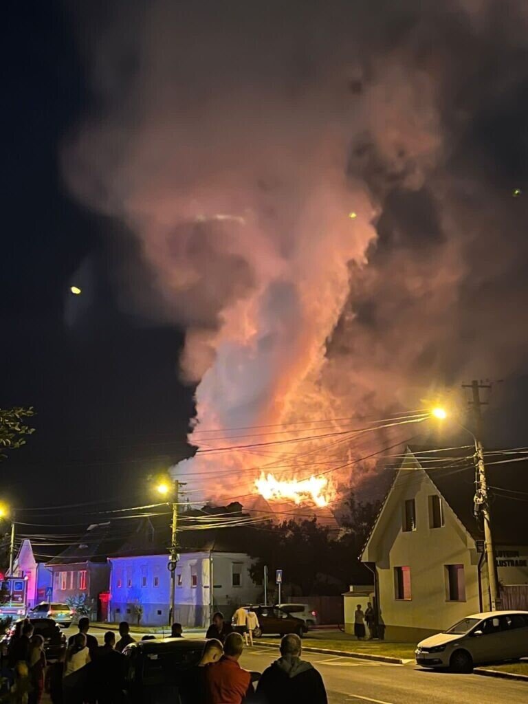 Incendiul se manifestă generalizat la acoperișul casei. Din fericire nu sunt semnalate victime.