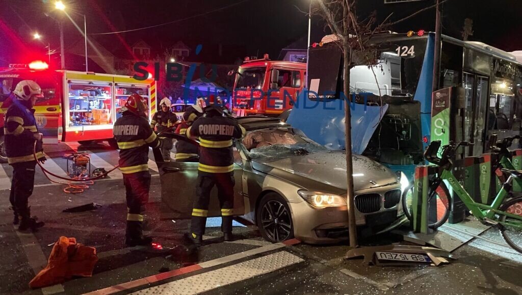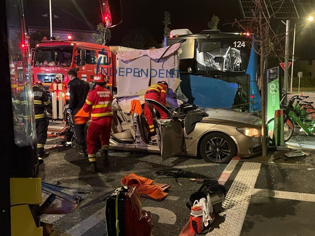 O tânără în vârstă de 30 de ani și-a pierdut viața într-un tragic accident produs aseară, în municipiul Sibiu. Mașina în care se afla s-a izbit puternic de două autobuze oprite în stație.