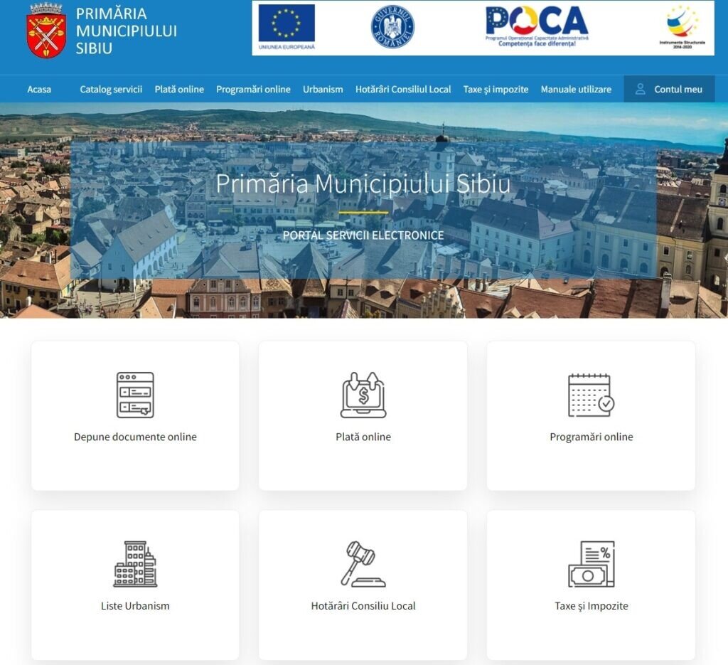 - platforma e-administrație a municipiului Sibiu – www.e-administratie.sibiu.ro