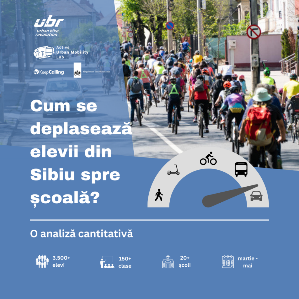 O cercetare cantitativă, privind mobilitatea elevilor din Sibiu, desfășurată în perioada martie – mai a acestui an, a dezvăluit date alarmante cu privire la mijloacele de transport utilizate de elevi pentru a ajunge la școală și la activitățile extra-curriculare. Datele obținute sunt rezultatul implicării a peste 150 de clase din peste 20 de școli din Sibiu, adunând mai mult de 3500 de răspunsuri de la elevi.