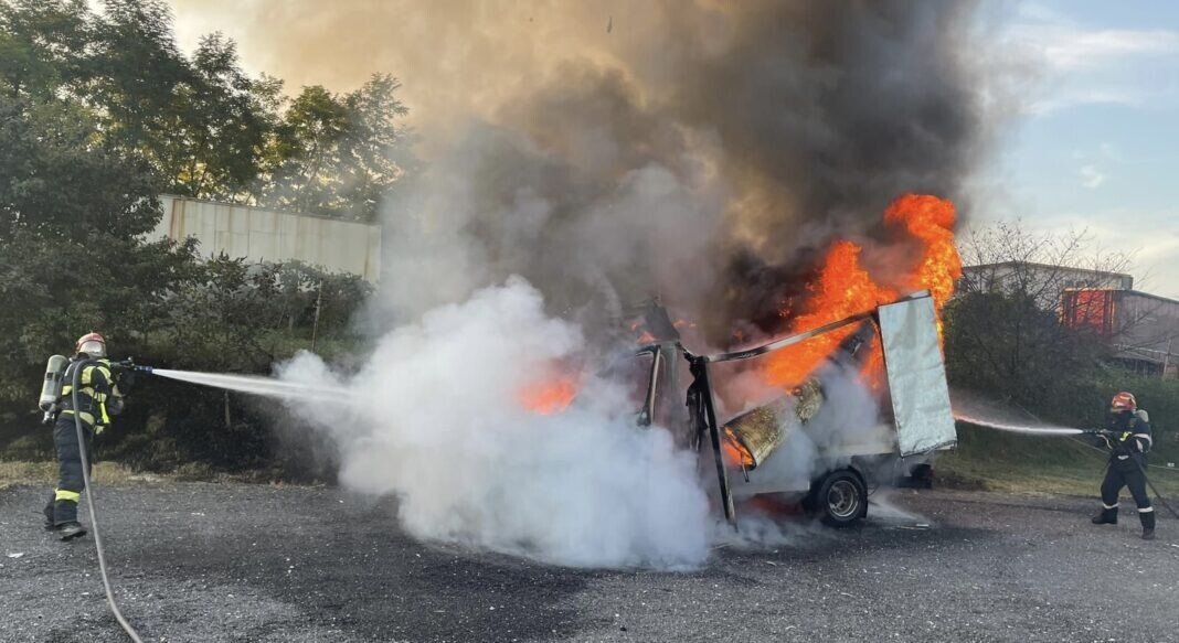 Pompierii sibieni au intervenit de urgență pe str. Ștefan cel Mare din municipiul Sibiu pentru localizarea si lichidarea unui incendiu care se manifesta la o autoutilitară care staționa.