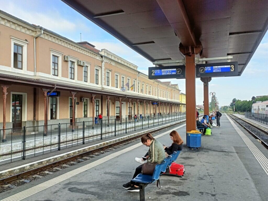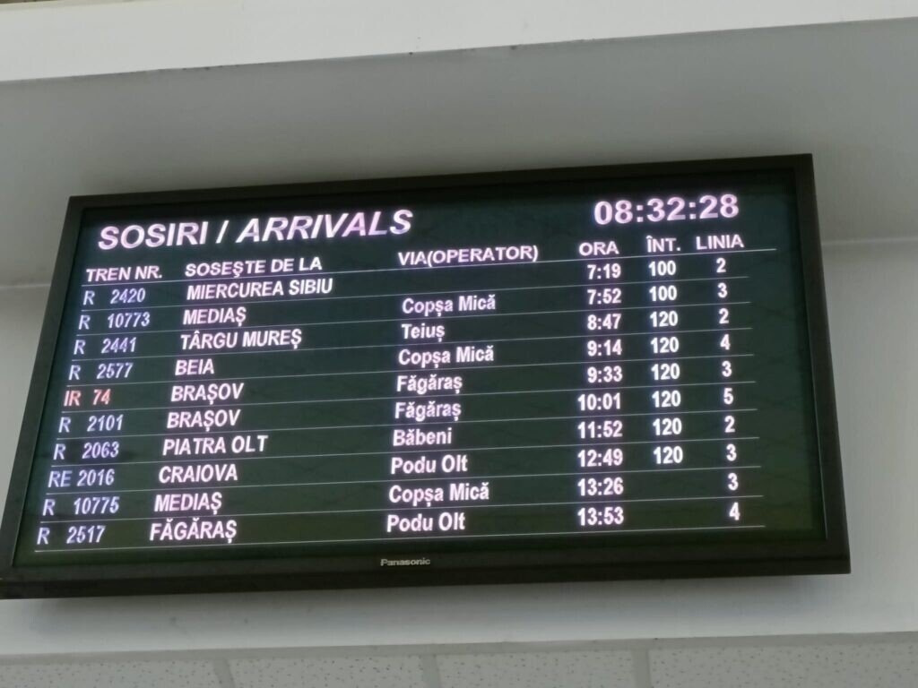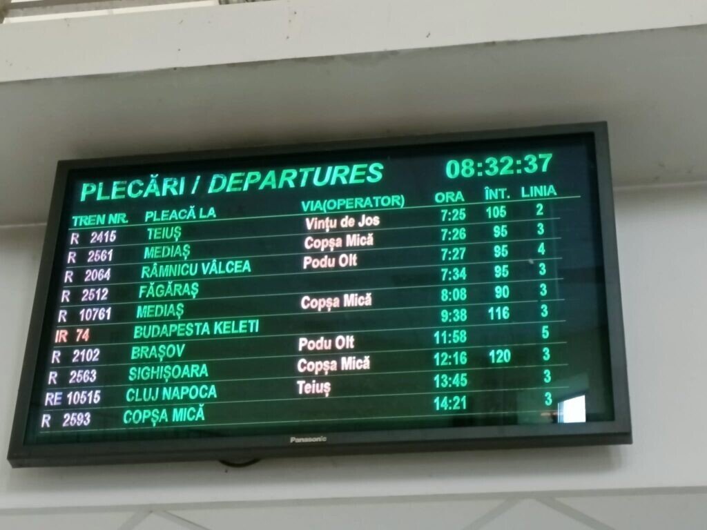 În Gara Sibiu aproximativ 50 de persoane așteptau sosirea trenurilor. Afișajele anunțau întârzieri de minim 100 minute și la plecări și sosiri.
