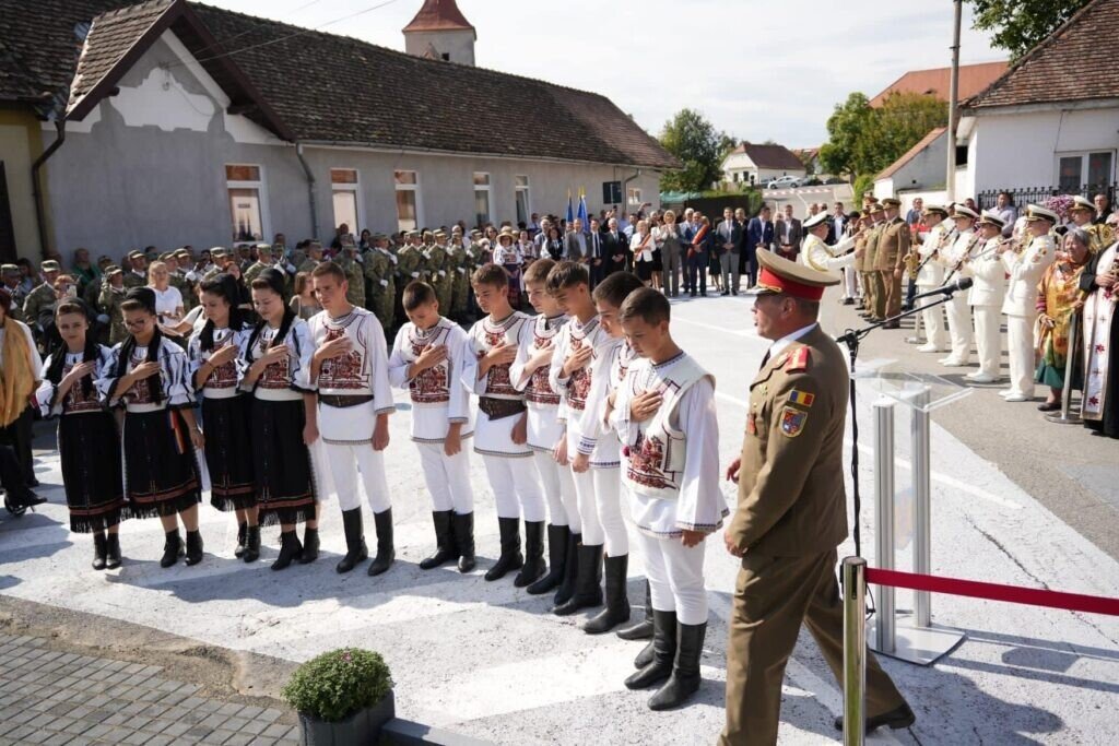 Un ceremonial militar și religios a avut loc. Sculptorul Radu Aftenie, în scaun cu rotile, a fost prezent la eveniment.