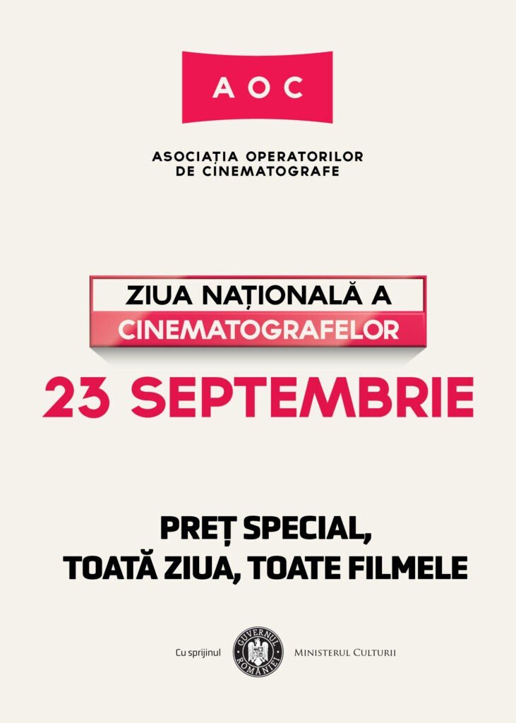 Asociația Operatorilor de Cinema, în parteneriat și cu sprijinul Ministerului Culturii, organizează sâmbătă, 23 septembrie, Ziua Cinematografelor care, pentru al doilea an consecutiv, îi așteaptă pe toți iubitorii de filme cu prețuri reduse întrega zi, la toate filmele și pentru toate formatele.