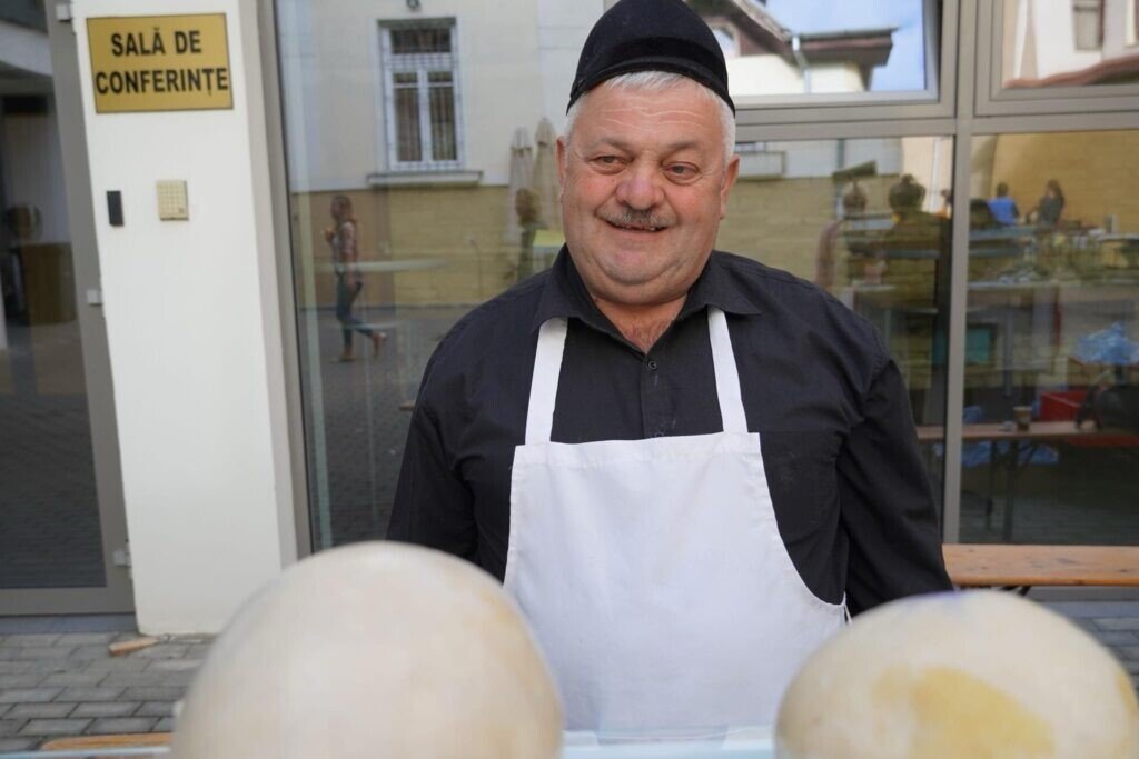 Pe Ioan Iancu, cioban harnic din Jina, îl găsiți vinerea în curtea Consiliului Județean Sibiu, iar sâmbăta la Piața Volantă Transilvania. Îl recunoașteți după clopul mândru, palmele mari și brânza bună.