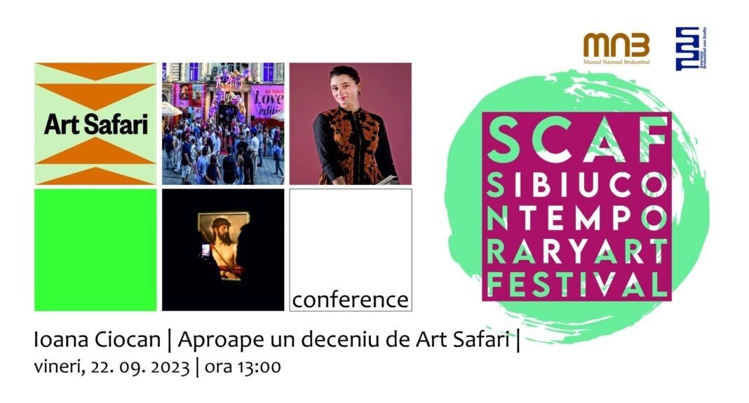 Seria conferințelor SCAF Sibiu Contemporary Art Festival continuă. Astăzi, 22 septembrie 2023, ora 13:00 vă invităm să urmăriți pe pagina de Facebook a Muzeului Național Brukenthal conferința „Aproape un deceniu de Art Safari”, susținută de Ioana Ciocan, CEO – Art Safari.