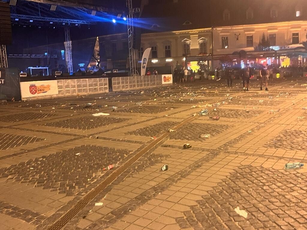 În contextul scandalului din Consiliul Local Sibiu privind mărirea tarifelor pentru sortarea deșeurilor reciclabile, în seara aceasta sibienii și turiștii prezenți la concertul Sibiu Music Fest în Piața Mare au lăsat o imagine dezolantă după ei.
